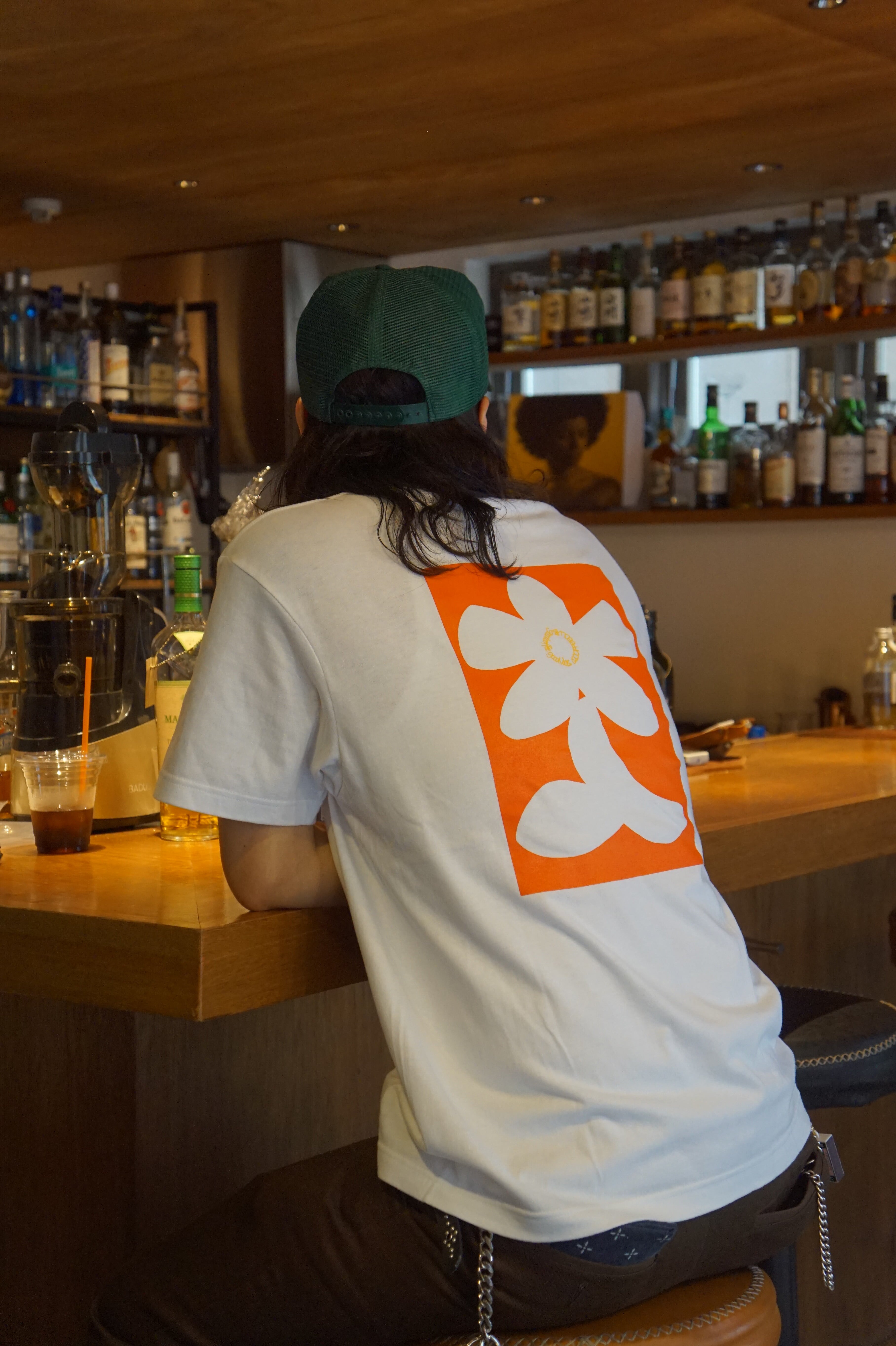 お店を構える両国という街にぴったりな、「大入り袋」をフラワーモチーフにして、バックプリントに落とし込みました。